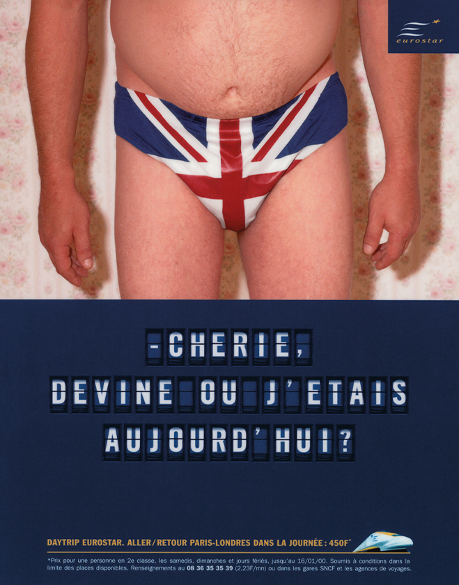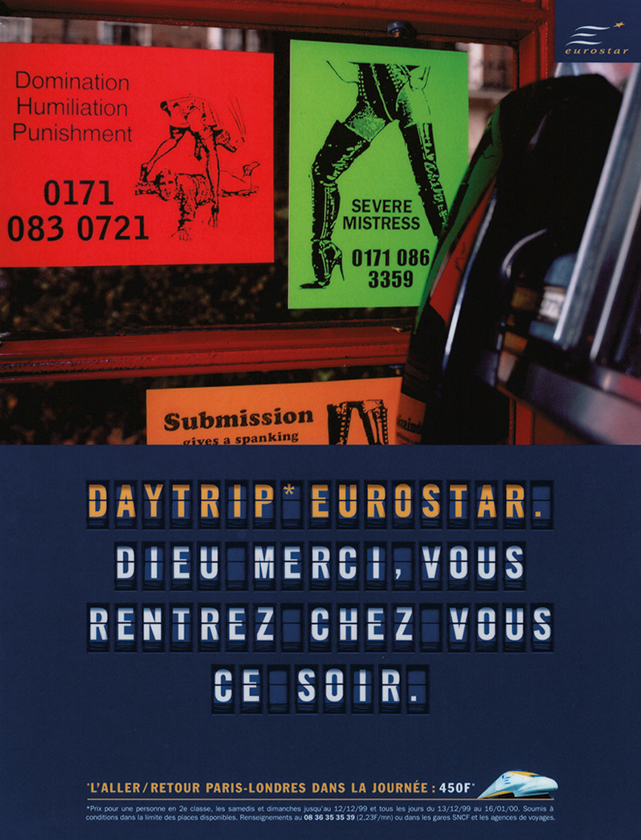 No luggage needed. Honey, guess where I was today. Thank God, you’re going back home tonight. Eurostar posters. Young & Rubicam