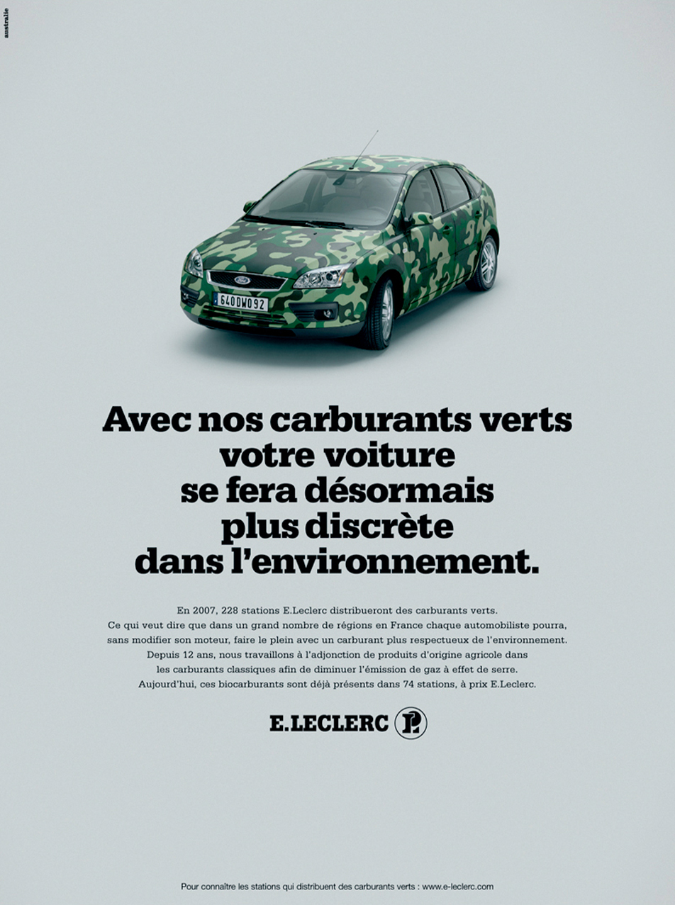 With our green fuels your car will now blend in the environment. Leclerc press. Australie Agency